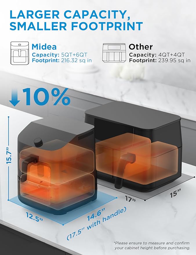 Midea Dual Basket Air Fryer Oven 11 Quart 8 in 1 Functions, Clear Window, Smart Sync Finish, Works with Alexa, Wi-Fi Connectivity MAD111D8APKW